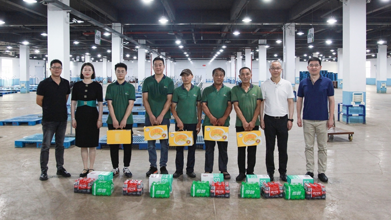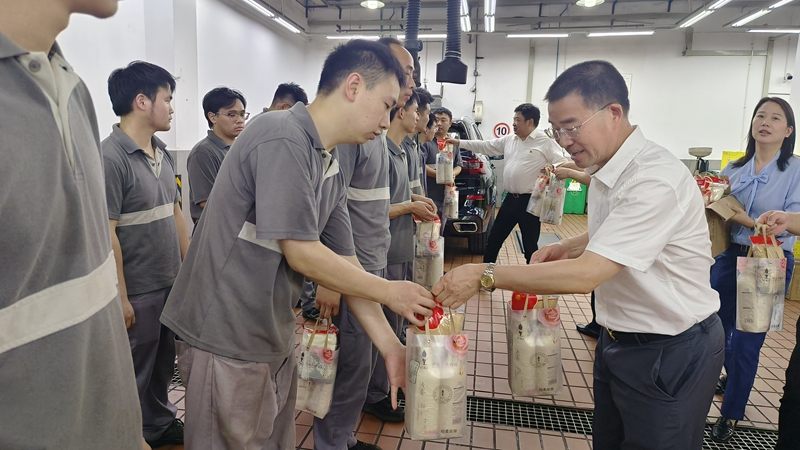 “你們辛苦了!”在浙農茂陽,李文華先后前往看望了配送車間、中央廚房一線員工與安保人員,李文華對大家不懼高溫堅守工作崗位的精神和工作付出表示誠摯感謝,親手送上一份份“清涼禮包”,并親切叮囑他們在高溫天氣下工作要關注身體負荷,及時補充營養,做好防暑措施,注意勞作安全。李文華強調,集團有關單位和部門要進一步做好防暑降溫工作,為員工創造良好的工作環境;要始終將安全生產作為企業發展的生命線,牢牢把好安全生產關;要加強員工關心關懷工作,提升員工在浙農工作的幸福感和滿足感。